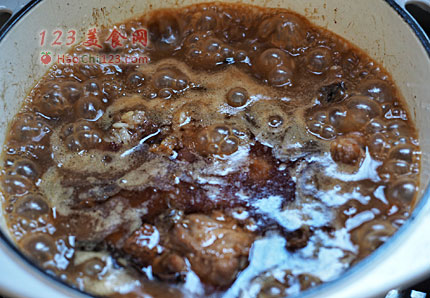 5、加入适量老抽上色。将所有原料翻炒均匀。