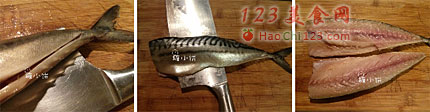 7、在鱼腹部分也这样划开一刀,一直划到尾端。