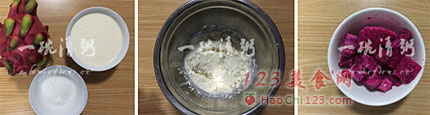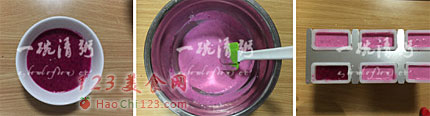 2、不放奶油,直接将火龙果一半榨汁一半放入模具中做成棒冰也不错的呢。