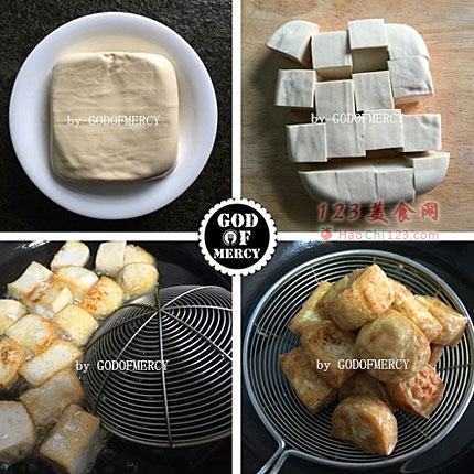 2、豆腐在做之前要控好水,否则煎炸的时候容易碎。