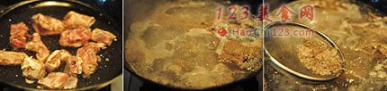 3、如果没用咖喱酱且也没用土豆做配菜,要提前用油炒一点面粉(约一比一)备用,可以使咖喱汤汁更浓稠,否则只用咖喱粉做的咖喱菜总也不是那个感觉。