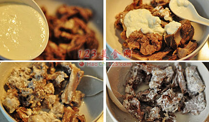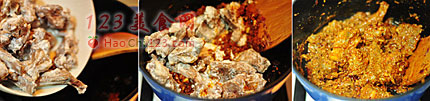 5、不要久炒以免香料变苦,加入腌好的羊排,和香料翻炒均匀。