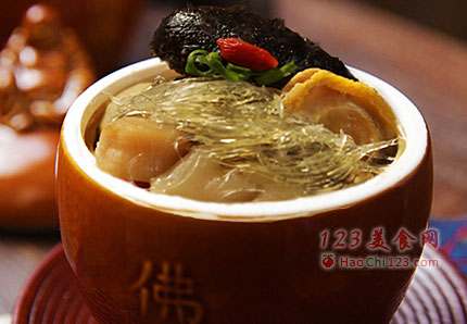 1、佛跳墙原名“福寿全”,食材集山珍海味汇聚坛内以小火煨制而成,上席启坛时,荤香四溢,文人墨客们品尝后大赞:“坛启荤香飘四邻,佛闻弃禅跳墙来”。因此,此菜改名叫佛跳墙。