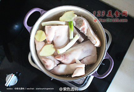 1、猪蹄去毛比较费时间,焯水后的猪蹄的细毛更加明显,可进行二次清除。