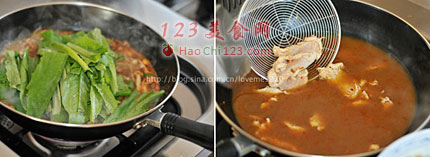4、鸡肉不要再汤里煮很久,只要里外都变成白色,就可以盛出了,这样鸡肉会很嫩。