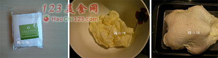 14、含盐黄油30G用微波炉融化,棉布用清水浸湿后挤干净水分,再浸泡到融化的黄油中充分吸收黄油。