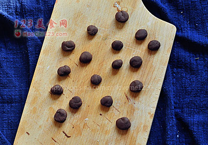 4、揉可可粉的时候,手里粘些水更容易揉进去。
