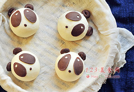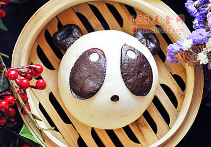 9、做好的熊猫包,口感松软有咬劲,里面的馅儿料香甜可口,熊猫造型惹人爱。
