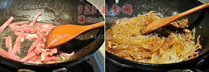 2、肉丝一定要放,这样味道才好。
