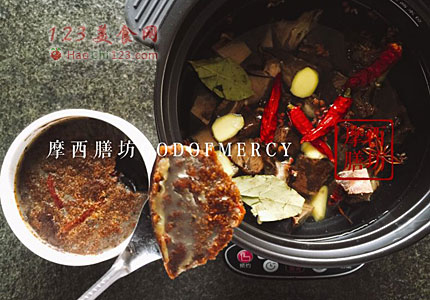 5、加进豆瓣酱。电炖锅预约两小时启动。