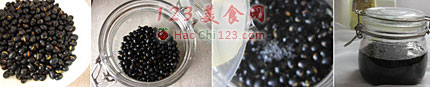 3、盛出放凉,装入干净的玻璃瓶内,倒入有机糙米醋,醋的量要溢过黑豆多一些。