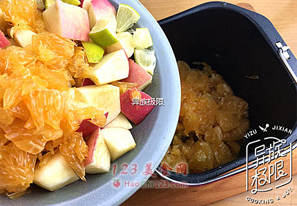 3、把水果交给美的EHS15AP-PGS面包机来做果酱,接通电源后,开始加热,15分钟后开始听到机器开始传来间歇搅拌声,省时省力,免去了在灶台前长时间站立和搅拌的功夫,又不用担心当忘记搅拌糊锅的尴尬。[LaoYanHuo.com]