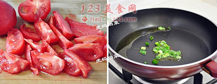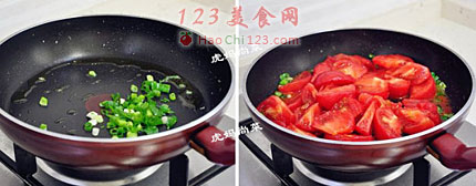 10、加入番茄,转大火,翻炒。