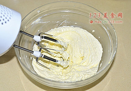 2、用电动打蛋器打至体积变大,颜色变白。