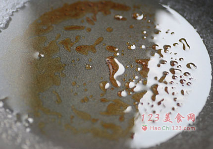 3、炒锅中放入油,烧热后放入白糖,变色溶解变成淡褐色。