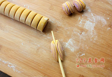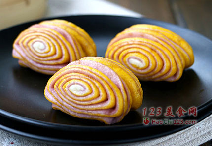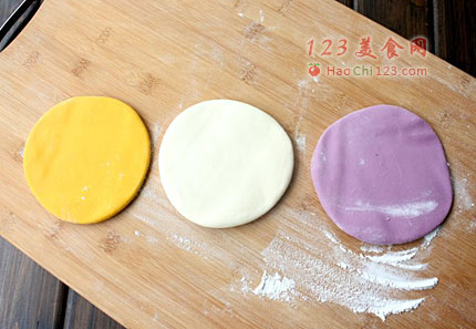 1、黄面团与紫面团中面粉的用量仅做参考,它会因为南瓜及紫薯的含水量不同而需做出调整。