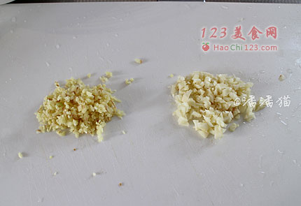 4、姜和蒜切成末。