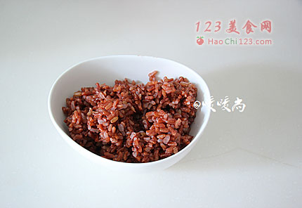 2、浸泡后的红米按照米和水的比例1:2.3左右煮成口感略硬的红米饭,打散晾凉备用。