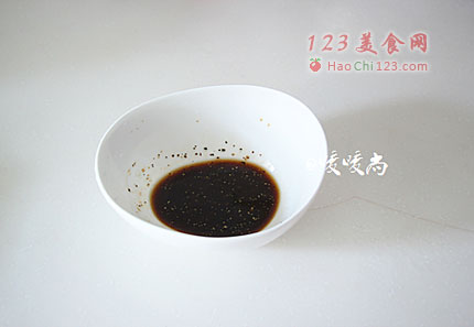 5、橄榄油、黑醋和黑胡椒调匀作为沙拉的酱汁。