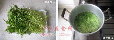 2、放入沸水中焯烫两分钟后捞出沥水。