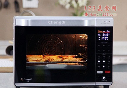 2、如果你的烤箱没有热旋风功能,就把热风功能打开吧,如果也没有普通热风功能,就直接放在中层用上下火来烘烤吧。只不过后两种方式都没有热旋风效果那么好。