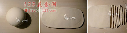 7、用手搓圆搓长,两端会自然搓得略尖,全部搓好的面条中间撒一些干粉防沾。