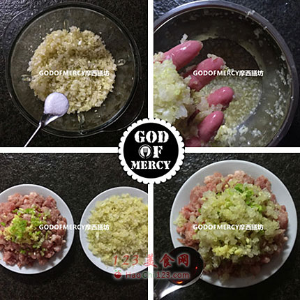 2、先将面团准备好,醒面的过程中,再来制作饺子馅。