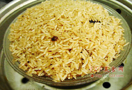 2、糯米(份量按人头算哈,和平时煮饭每人份量相当)洗净,加入全部的汤汁浸泡,如果汤汁不够还要添一点水,我泡了一夜,最少也得泡一两个小时吧。