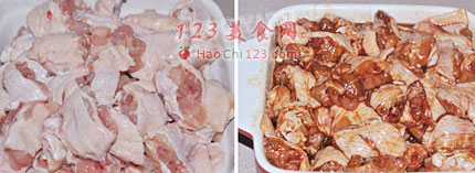 2、剁好的鸡翅放入所有腌料,用手抓均匀,盖上保鲜膜放入冰箱冷藏一晚上。