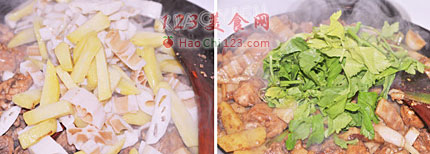 7、如果没有胃口,想来到下饭菜推荐这道菜。鲜香,辣味适中,搭配米饭特好吃。喜欢喝啤酒的这也是一道不错的下酒菜。老公很爱吃这道菜,我家也是时不时就要炒一大碗,鸡肉非常鲜嫩,一点儿腥味都没有。土豆绵软香甜,莲藕清新爽脆,最后加上一点儿芹菜叶特提味道,如果不喜欢芹菜可以换成香菜。[LaoYanHuo.com]