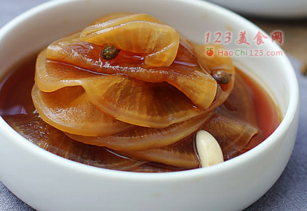 贴士:腌渍白萝卜的料汁不要调的太咸,否则在冰箱放的越久越咸反而不好吃了。[LaoYanHuo.com]