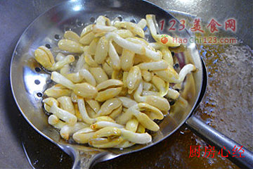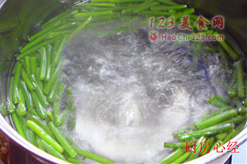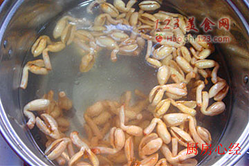 5、炸过的花生芽,再焯水一次,去掉油脂。