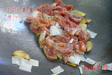 9、倒入砂锅中,浇上料酒,盖盖。在火上烧大约1分钟即可上桌。[LaoYanHuo.com]
