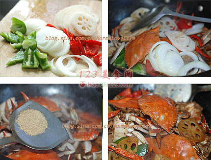 3、放入蟹翻炒至壳红。