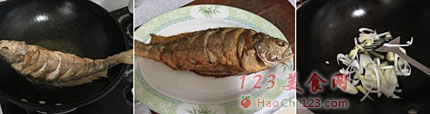 2、煎鱼不破皮的小窍门:一是用厨房纸将鱼身上的水吸走;二是干锅时在锅内涂抹生姜片,让姜汁留在锅壁上;三是油热后再将鱼放入锅中。