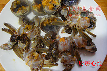4、河蟹,洗净,拆成蟹块,撒上少许干淀粉待用。