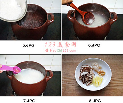 8、处理食材,香菇切片,姜切丝,海米泡好,贝柱清洗干净。