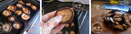 4、起油锅,下香菇片爆炒,加入蚝油1平铲,酱油(看上色情况和咸度决定),糖2小勺。