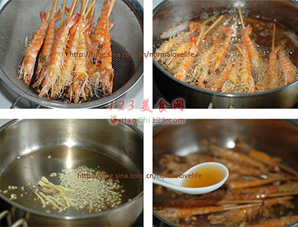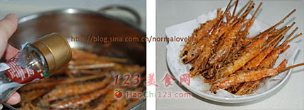 2、虾下锅前要把水分吸干,不然就要爆油。