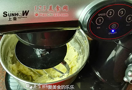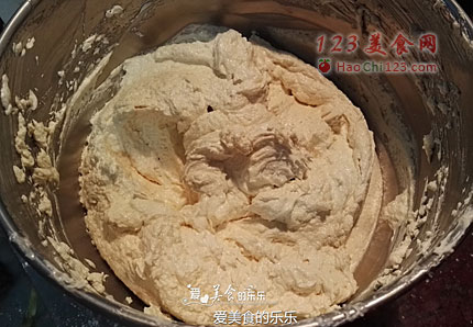 2、黄油要充分打发到体积至少变大1倍,蓬松状,再加入蛋液。