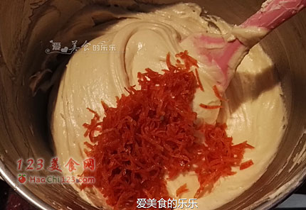 5、加入糖渍橙皮.糖渍橙皮可以买也可以自制:橙子洗干净,刮下表皮,加糖腌制,放冰箱保存就好。有人会把橙皮煮一下,个人认为煮后,橙皮中的香味挥发掉,直接腌制就好。