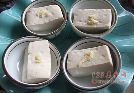 二、做法:1、将豆腐切块放到锅中蒸5分钟。