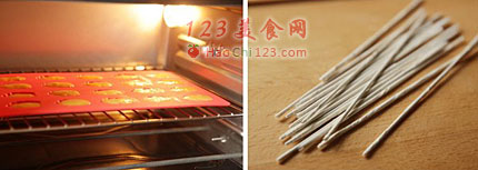6、放入预热好的烤箱内,180度,15分钟即可。烘焙油纸剪成长条,包裹在细铝线上。