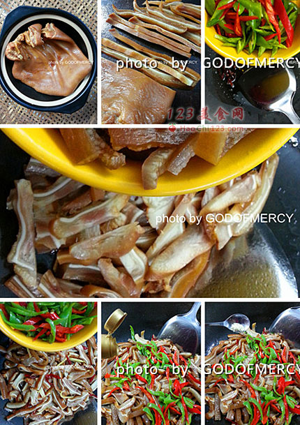3、爆炒是用大火,猪耳朵含有大量的胶原蛋白炒制的时候注意不要粘锅。