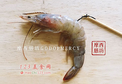 2、沿着虾背切开,注意不要切断,切开后去除虾线。在片好的虾肉上菱形多划几刀,可以让馅料的味道充分渗透到虾肉里。