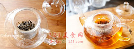 3、红茶放入茶壶内。