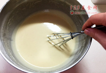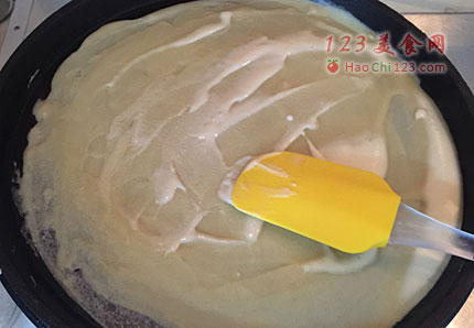 6、电饼铛抹油,放入面糊,摊薄,两面烙熟后出锅。