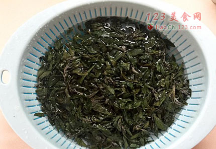 2、扫帚菜清洗干净。因为扫帚菜长在路边,菜苗有细细绒毛,容易落尘,要多洗几遍。