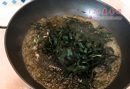 3、锅里烧开水,放扫帚菜焯一下,如果特别嫩,就要时间短点。