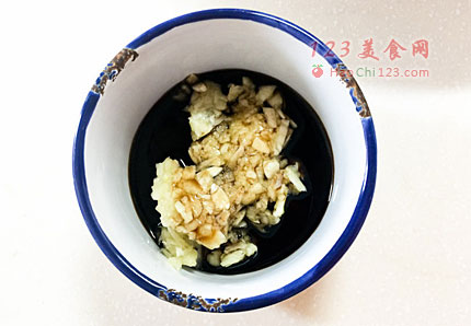 4、焯后撰干水,扫帚苗和蛋白剁碎,放入盆中,放盐,花椒油调味。